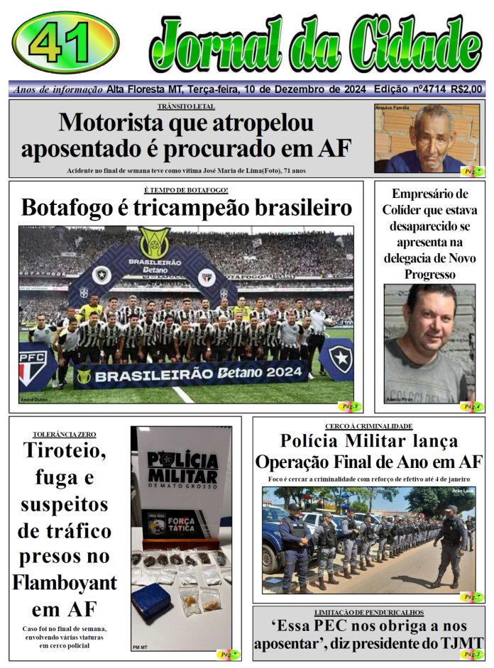 Edições do Jornal Edição 4714 10 de dezembro de 2024 Compartilhe: FacebookTwitterPinterestWhatsApp Loading... Taking too long? Reload document | Open in new tab Artigo anteriorInfluência da chuva em MTPróximo artigoTOLERÂNCIA ZERO: Tiroteio, fuga e suspeitos de tráfico presos no Flamboyant em AF Alta Floresta céu pouco nublado enter location 27.8 ° C 27.8 ° 27.8 ° 84 % 1.8kmh 13 % qua 27 ° qui 30 ° sex 30 ° sáb 28 ° dom 27 ° Últimas notícias Governo não opina Papo de Esquina Governo não opina – II Papo de Esquina Upa saturada Papo de Esquina Hospital lotado Papo de Esquina Quer recepção calorosa Papo de Esquina Artigos relacionados Papo de Esquina Quer recepção calorosa – II Em um vídeo gravado antes do embarque para o estado, Flávio disse: “Grande satisfação estar chegando em Mato... Papo de Esquina Governo não opina O governador Otaviano Pivetta (Republicanos) disse que “não interessa” qual será o município onde ficará o Hospital Universitário... Papo de Esquina Governo não opina – II Otaviano Pivetta foi bem enfático ao comentar o assunto. “Essa questão, a Assembleia está cuidando disso. Nós vamos... Papo de Esquina Upa saturada E a Unidade de Pronto Atendimento de Alta Floresta registra grande volume de pacientes de dia e à...