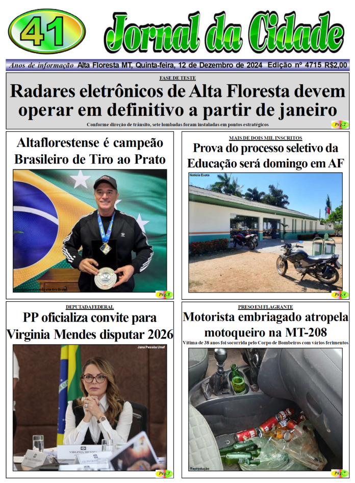 Edições do Jornal Edição 4715 12 de dezembro de 2024 Compartilhe: FacebookTwitterPinterestWhatsApp Loading... Taking too long? Reload document | Open in new tab Artigo anteriorATRÁS DAS GRADES: Envolvido em roubo a farmácia em AF é preso em SinopPróximo artigoAlta Floresta: Secretaria de Saúde publica Portaria regulamentando atividades no fim de ano Alta Floresta nuvens quebradas enter location 26.9 ° C 26.9 ° 26.9 ° 89 % 2.1kmh 75 % qui 31 ° sex 30 ° sáb 29 ° dom 29 ° seg 30 ° Últimas notícias HOMEM QUE CAIU DE EMBARCAÇÃO: Bombeiros cessam buscas por turista desaparecido no Rio Juruena Polícia SÉRIE B: Cuiabá vence a primeira e sai do Z-4 Esporte PEDIRÁ VOTOS PARA EX-GOVERNADOR: Alckmin será cabo eleitoral de Taques na disputa ao Senado e agenda visita a MT Geral ACIDENTE DE TRABALHO: Homem cai de andaime e vai parar na UTI em AF Polícia SEM CITAR NOMES: Pivetta volta acusar senador de ‘negociata’ com prefeituras Geral Artigos relacionados Destaques NA ONDA BOLSONARISTA: Mauro diz que Flávio Bolsonaro é herdeiro da direita e sinaliza apoio Pablo Rodrigo Gazeta Digital O ex-governador Mauro Mendes (União) classificou o senador Flávio Bolsonaro (PL-RJ), como o ‘herdeiro’ da direita... Polícia HOMEM QUE CAIU DE EMBARCAÇÃO: Bombeiros cessam buscas por turista desaparecido no Rio Juruena Por Arão Leite Alta Floresta – Foram cessadas por parte do Corpo de Bombeiros, as buscas ao turista Marcelo... Esporte SÉRIE B: Cuiabá vence a primeira e sai do Z-4 Gustavo Sampaio Jornal da Cidade O Dourado venceu sua primeira partida na Série B 2026. O triunfo veio contra o... Geral PEDIRÁ VOTOS PARA EX-GOVERNADOR: Alckmin será cabo eleitoral de Taques na disputa ao Senado e agenda visita a MT Fred Moraes Gazeta Digital Vice-presidente da República e uma das principais lideranças nacionais do Partido Socialista Brasileiro (PSB), Geraldo Alckmin...