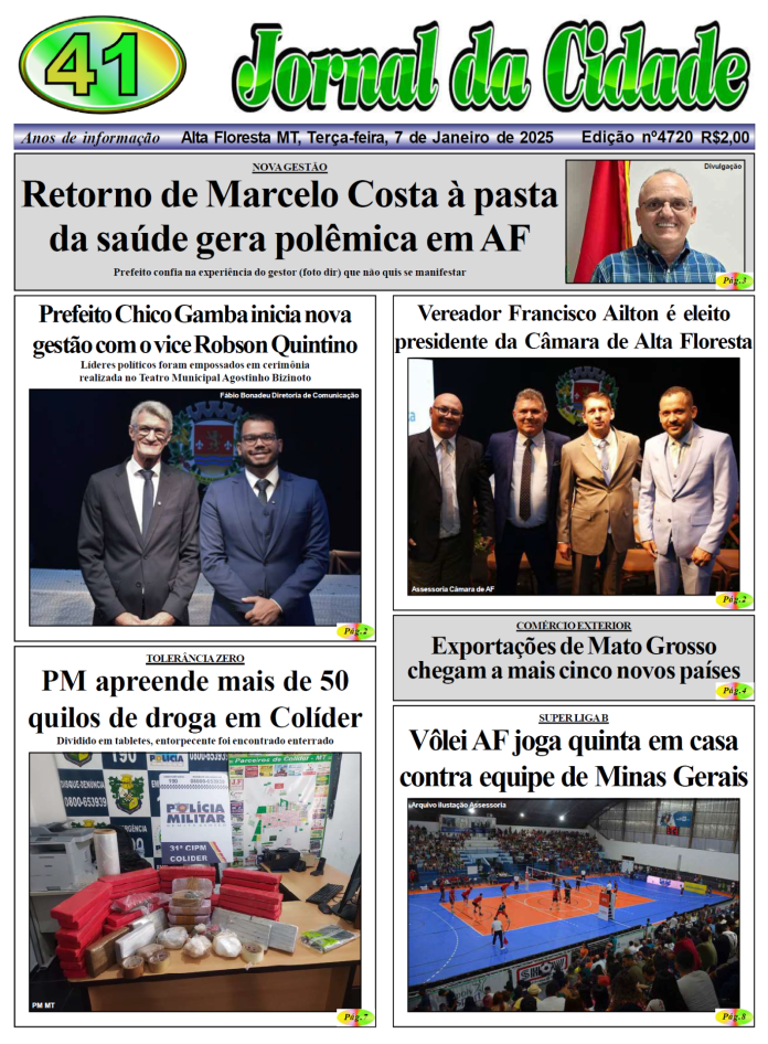 Edições do Jornal Edição 4720 8 de janeiro de 2025 Compartilhe: FacebookTwitterPinterestWhatsApp Loading... Taking too long? Reload document | Open in new tab Artigo anteriorFOI APARTAR BRIGA: Polícia Civil investiga assassinato de homem durante réveillon em ApiacásPróximo artigoSeciteci oferta cursos gratuitos com pagamento de auxílio estudantil Alta Floresta nuvens quebradas enter location 22.5 ° C 22.5 ° 22.5 ° 96 % 1.3kmh 69 % qui 34 ° sex 29 ° sáb 28 ° dom 28 ° seg 24 ° Últimas notícias HOMEM QUE CAIU DE EMBARCAÇÃO: Bombeiros cessam buscas por turista desaparecido no Rio Juruena Polícia SÉRIE B: Cuiabá vence a primeira e sai do Z-4 Esporte PEDIRÁ VOTOS PARA EX-GOVERNADOR: Alckmin será cabo eleitoral de Taques na disputa ao Senado e agenda visita a MT Geral ACIDENTE DE TRABALHO: Homem cai de andaime e vai parar na UTI em AF Polícia SEM CITAR NOMES: Pivetta volta acusar senador de ‘negociata’ com prefeituras Geral Artigos relacionados Destaques NA ONDA BOLSONARISTA: Mauro diz que Flávio Bolsonaro é herdeiro da direita e sinaliza apoio Pablo Rodrigo Gazeta Digital O ex-governador Mauro Mendes (União) classificou o senador Flávio Bolsonaro (PL-RJ), como o ‘herdeiro’ da direita... Polícia HOMEM QUE CAIU DE EMBARCAÇÃO: Bombeiros cessam buscas por turista desaparecido no Rio Juruena Por Arão Leite Alta Floresta – Foram cessadas por parte do Corpo de Bombeiros, as buscas ao turista Marcelo... Esporte SÉRIE B: Cuiabá vence a primeira e sai do Z-4 Gustavo Sampaio Jornal da Cidade O Dourado venceu sua primeira partida na Série B 2026. O triunfo veio contra o... Geral PEDIRÁ VOTOS PARA EX-GOVERNADOR: Alckmin será cabo eleitoral de Taques na disputa ao Senado e agenda visita a MT Fred Moraes Gazeta Digital Vice-presidente da República e uma das principais lideranças nacionais do Partido Socialista Brasileiro (PSB), Geraldo Alckmin...