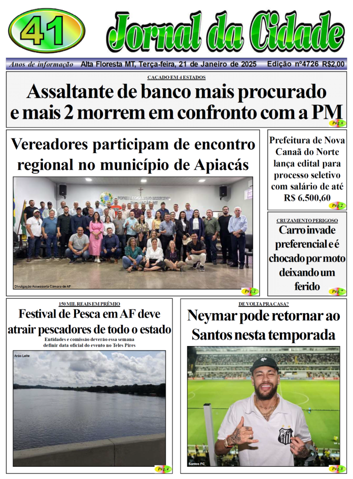 Edições do Jornal Edição 4726 21 de janeiro de 2025 Compartilhe: FacebookTwitterPinterestWhatsApp Loading... Taking too long? Reload document | Open in new tab Artigo anteriorPrefeitos alinhadosPróximo artigoAlta Floresta Tornozelado tenta fugir de blitz da lei seca e acaba detido Alta Floresta nublado enter location 25.6 ° C 25.6 ° 25.6 ° 91 % 0.5kmh 100 % sáb 29 ° dom 25 ° seg 23 ° ter 29 ° qua 28 ° Últimas notícias QUASE TRAGÉDIA EM NOVA BANDEIRANTES: Tiro acidental atinge filha de homem que fazia manutenção em arma Polícia Amanda, linda Social Beatriz, se destaca em nossa coluna social com sorriso lindo Social INTEGRANTE DE FACÇÃO: Menor é detido com maconha, pasta base e cocaína em Alta Floresta Polícia Erisvania, uma excelente maquiadora Social Artigos relacionados Geral MODELO DE GESTÃO: Mais 15 escolas aprovam conversão para gestão cívico-militar e Rede Estadual passa a contar com 223 unidades em MT Laís Soares | Seduc-MT A Rede Estadual de Ensino de Mato Grosso agora passa a contar com 223 escolas... Polícia QUASE TRAGÉDIA EM NOVA BANDEIRANTES: Tiro acidental atinge filha de homem que fazia manutenção em arma Por Arão Leite Alta Floresta – A Polícia Civil apura um caso de disparo acidental que quase termina em... Social Amanda, linda Social Beatriz, se destaca em nossa coluna social com sorriso lindo