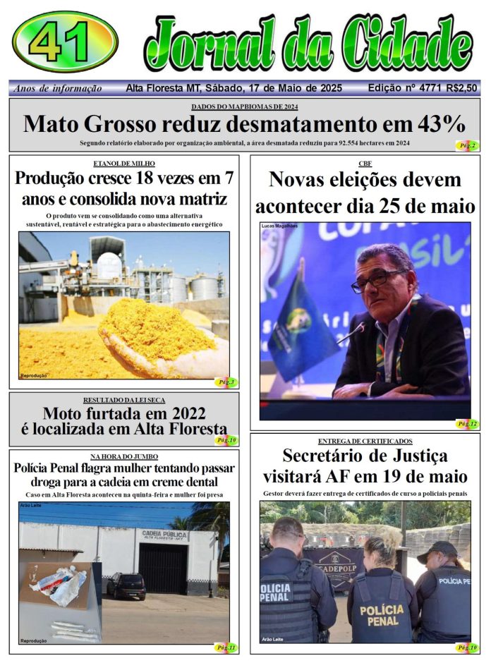 Edições do Jornal Edição 4771 17 de maio de 2025 Compartilhe: FacebookTwitterPinterestWhatsApp Loading... Taking too long? Reload document | Open in new tab Artigo anteriorDanie e Manoele Baldez, irmãs sempre destaques por onde passam. ParabénsPróximo artigo25 anos de fundação Alta Floresta nublado enter location 22.3 ° C 22.3 ° 22.3 ° 97 % 1kmh 100 % sáb 28 ° dom 25 ° seg 27 ° ter 28 ° qua 24 ° Últimas notícias QUASE TRAGÉDIA EM NOVA BANDEIRANTES: Tiro acidental atinge filha de homem que fazia manutenção em arma Polícia Amanda, linda Social Beatriz, se destaca em nossa coluna social com sorriso lindo Social INTEGRANTE DE FACÇÃO: Menor é detido com maconha, pasta base e cocaína em Alta Floresta Polícia Erisvania, uma excelente maquiadora Social Artigos relacionados Geral MODELO DE GESTÃO: Mais 15 escolas aprovam conversão para gestão cívico-militar e Rede Estadual passa a contar com 223 unidades em MT Laís Soares | Seduc-MT A Rede Estadual de Ensino de Mato Grosso agora passa a contar com 223 escolas... Polícia QUASE TRAGÉDIA EM NOVA BANDEIRANTES: Tiro acidental atinge filha de homem que fazia manutenção em arma Por Arão Leite Alta Floresta – A Polícia Civil apura um caso de disparo acidental que quase termina em... Social Amanda, linda Social Beatriz, se destaca em nossa coluna social com sorriso lindo