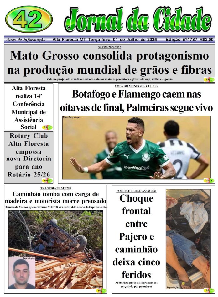 Edições do Jornal Edição 4787 1 de julho de 2025 Compartilhe: FacebookTwitterPinterestWhatsApp Loading... Taking too long? Reload document | Open in new tab Artigo anteriorAGRICULTURA FAMILIAR: Associações de Alta Floresta são contempladas com atomizadoresPróximo artigoPANE ELÉTRICA: Incêndio em AF destrói carro de aplicativo avaliado em quase R$ 40 mil Alta Floresta chuva forte enter location 21.1 ° C 21.1 ° 21.1 ° 97 % 0.3kmh 38 % ter 34 ° qua 28 ° qui 30 ° sex 29 ° sáb 25 ° Últimas notícias QUASE TRAGÉDIA EM NOVA BANDEIRANTES: Tiro acidental atinge filha de homem que fazia manutenção em arma Polícia Amanda, linda Social Beatriz, se destaca em nossa coluna social com sorriso lindo Social INTEGRANTE DE FACÇÃO: Menor é detido com maconha, pasta base e cocaína em Alta Floresta Polícia Erisvania, uma excelente maquiadora Social Artigos relacionados Geral MODELO DE GESTÃO: Mais 15 escolas aprovam conversão para gestão cívico-militar e Rede Estadual passa a contar com 223 unidades em MT Laís Soares | Seduc-MT A Rede Estadual de Ensino de Mato Grosso agora passa a contar com 223 escolas... Polícia QUASE TRAGÉDIA EM NOVA BANDEIRANTES: Tiro acidental atinge filha de homem que fazia manutenção em arma Por Arão Leite Alta Floresta – A Polícia Civil apura um caso de disparo acidental que quase termina em... Social Amanda, linda Social Beatriz, se destaca em nossa coluna social com sorriso lindo