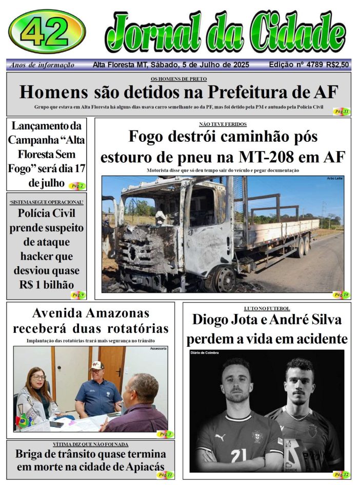 Edições do Jornal Edição 4789 5 de julho de 2025 Compartilhe: FacebookTwitterPinterestWhatsApp Loading... Taking too long? Reload document | Open in new tab Artigo anteriorOrientação sobre casas popularesPróximo artigoEleticia e Ilmar, Amor que se completa com parceria e companherismo. Felicidades ao casal. Alta Floresta nublado enter location 22.3 ° C 22.3 ° 22.3 ° 97 % 1kmh 100 % sáb 28 ° dom 25 ° seg 27 ° ter 28 ° qua 24 ° Últimas notícias QUASE TRAGÉDIA EM NOVA BANDEIRANTES: Tiro acidental atinge filha de homem que fazia manutenção em arma Polícia Amanda, linda Social Beatriz, se destaca em nossa coluna social com sorriso lindo Social INTEGRANTE DE FACÇÃO: Menor é detido com maconha, pasta base e cocaína em Alta Floresta Polícia Erisvania, uma excelente maquiadora Social Artigos relacionados Geral MODELO DE GESTÃO: Mais 15 escolas aprovam conversão para gestão cívico-militar e Rede Estadual passa a contar com 223 unidades em MT Laís Soares | Seduc-MT A Rede Estadual de Ensino de Mato Grosso agora passa a contar com 223 escolas... Polícia QUASE TRAGÉDIA EM NOVA BANDEIRANTES: Tiro acidental atinge filha de homem que fazia manutenção em arma Por Arão Leite Alta Floresta – A Polícia Civil apura um caso de disparo acidental que quase termina em... Social Amanda, linda Social Beatriz, se destaca em nossa coluna social com sorriso lindo
